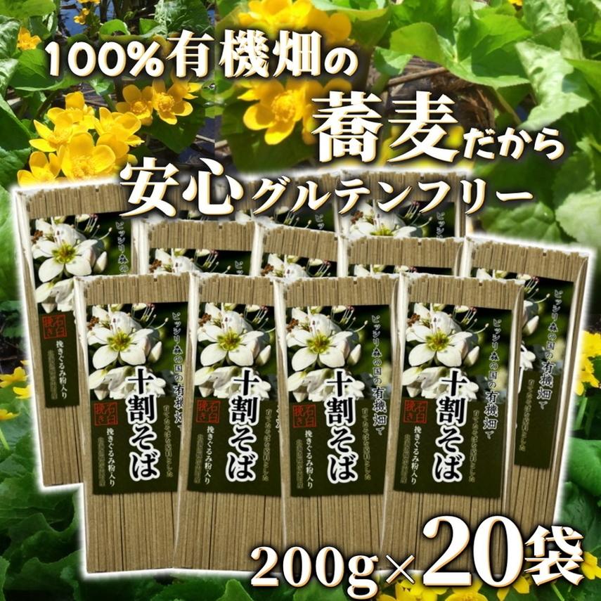 有機畑で育てたそばを原料とした十割そば【20袋入り】 ¥15,400(税込)
