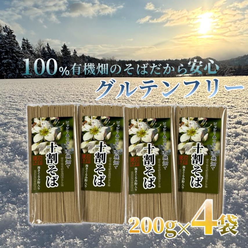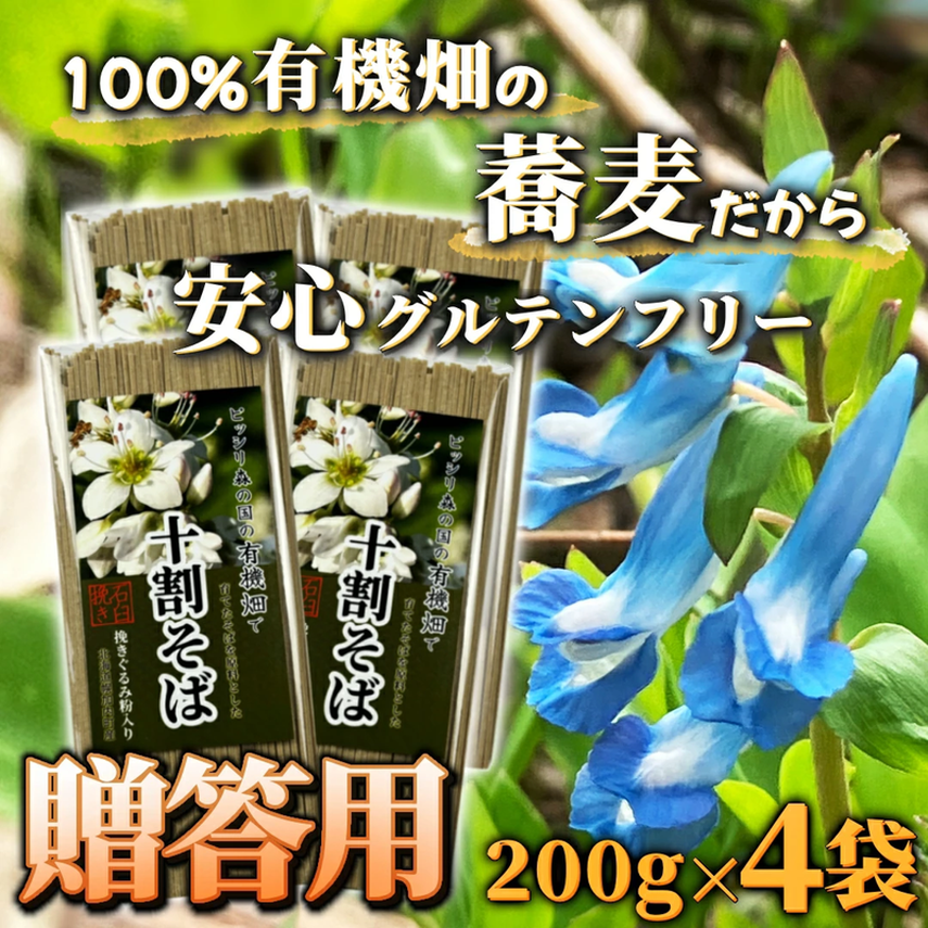 【贈答用:ギフト】有機畑で育てたそばを原料とした十割そば【4袋入り】