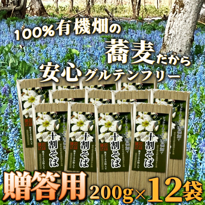【贈答用:ギフト】有機畑で育てたそばを原料とした十割そば【12袋入り】